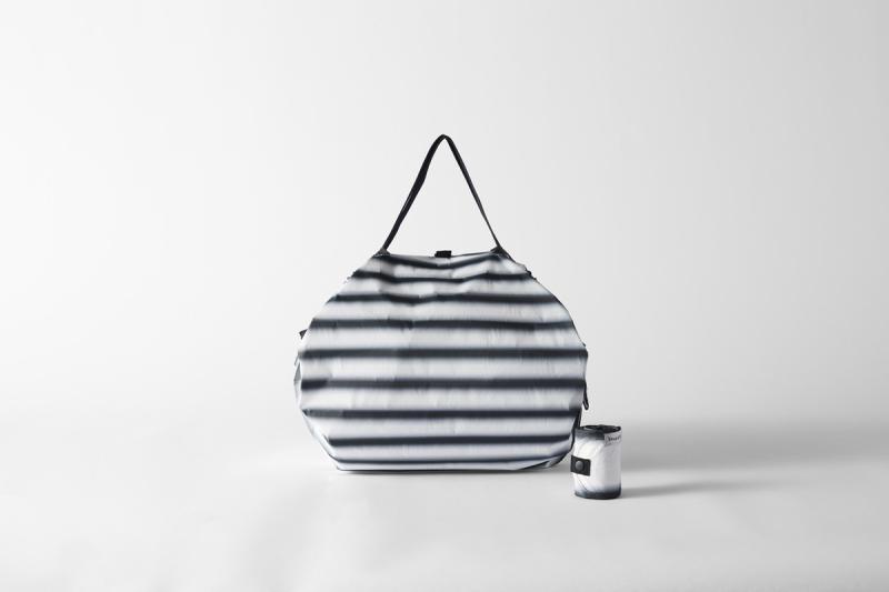 Shupatto Anniversary Edition Bag M – Highlight Black: the accordion pleats are colored with blurred ink-like lines. It highlights the key structure that allows the bag to fold in seconds.